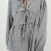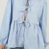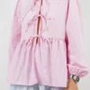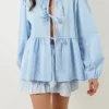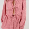 Womens Tie Front Tops Long Sleeve Round Neck Hollow Out Loose Babydoll Shirts Spring Fall Blouses