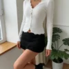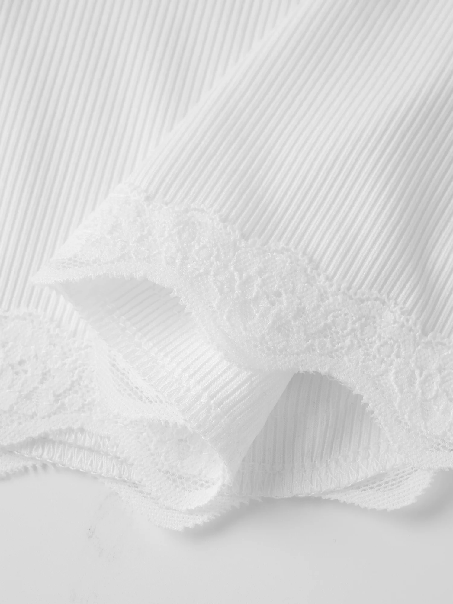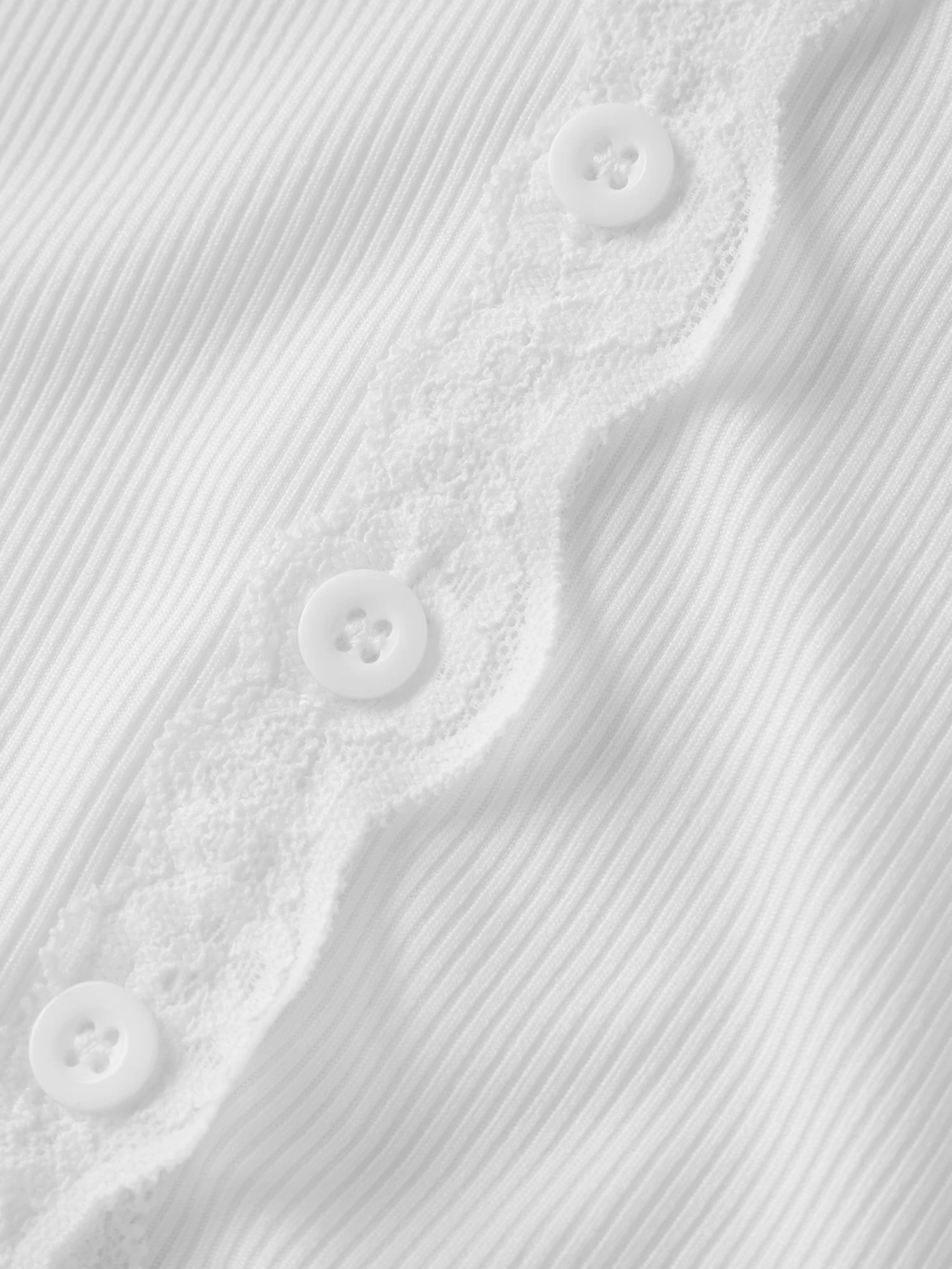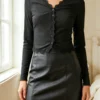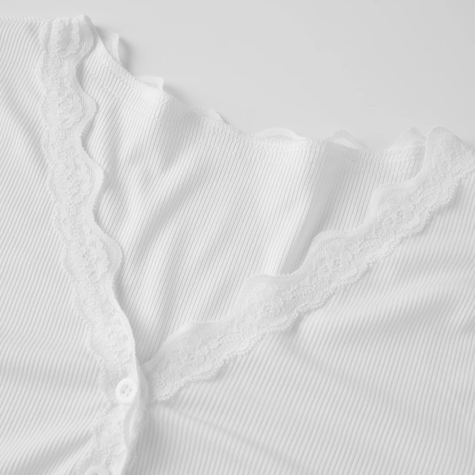 Women Long Sleeve Ribbed Shirts Lace Trim Button-up V Neck Slim Fit Tops Elegant Blouses Spring Streetwear